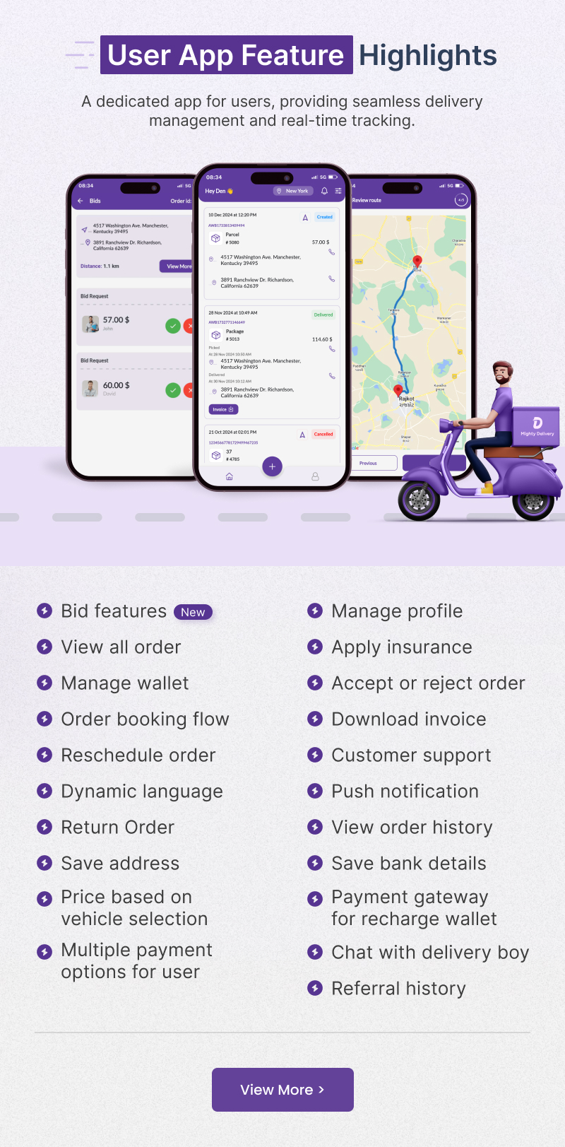 استمتع بخدمات الشحن السلسة مع تطبيقنا! قم بترتيب الاستلام والتوصيل، وتتبع طردك في الوقت الفعلي على الخريطة الحية. يتضمن التطبيق محفظة مدمجة لتسهيل المعاملات. بسط عمليات التوصيل باستخدام تطبيقنا السهل الاستخدام. هذا التطبيق اللوجستي وقالب تطبيق توصيل الطرود هو الحل المثالي لجميع احتياجات الشحن. يأتي تطبيق شركات الشحن بتصميم رائع ومميز، وهو محسّن لكلا المنصتين أندرويد وiOS. كما أن التطبيق مُحسَّن لضمان سلاسة في الأداء وسهولة التخصيص.